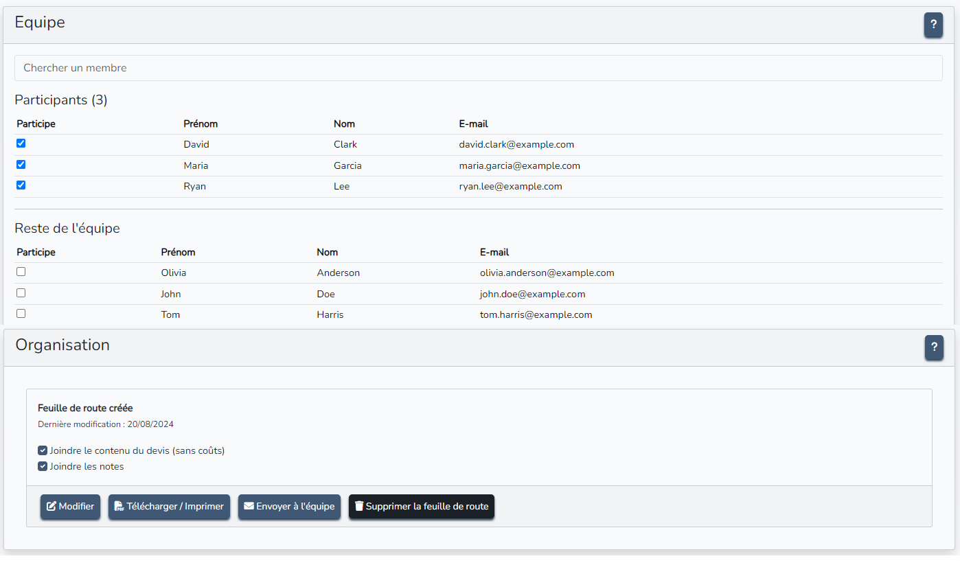 Gestion d'équipe, calendrier, mails automatiques, ...